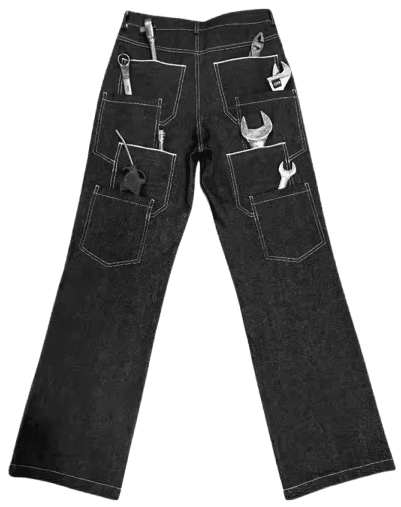 POPPEOJECT Double Waist Japanese Red Ear Gubuhara Cow Three-Dimensional Cut Multi-Pocket Straight-leg Denim