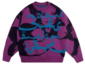 Sptnbw American Purple Art Knitted Sweater Versatile Casual Round Neck Men and Women National Trend Autumn and Winter